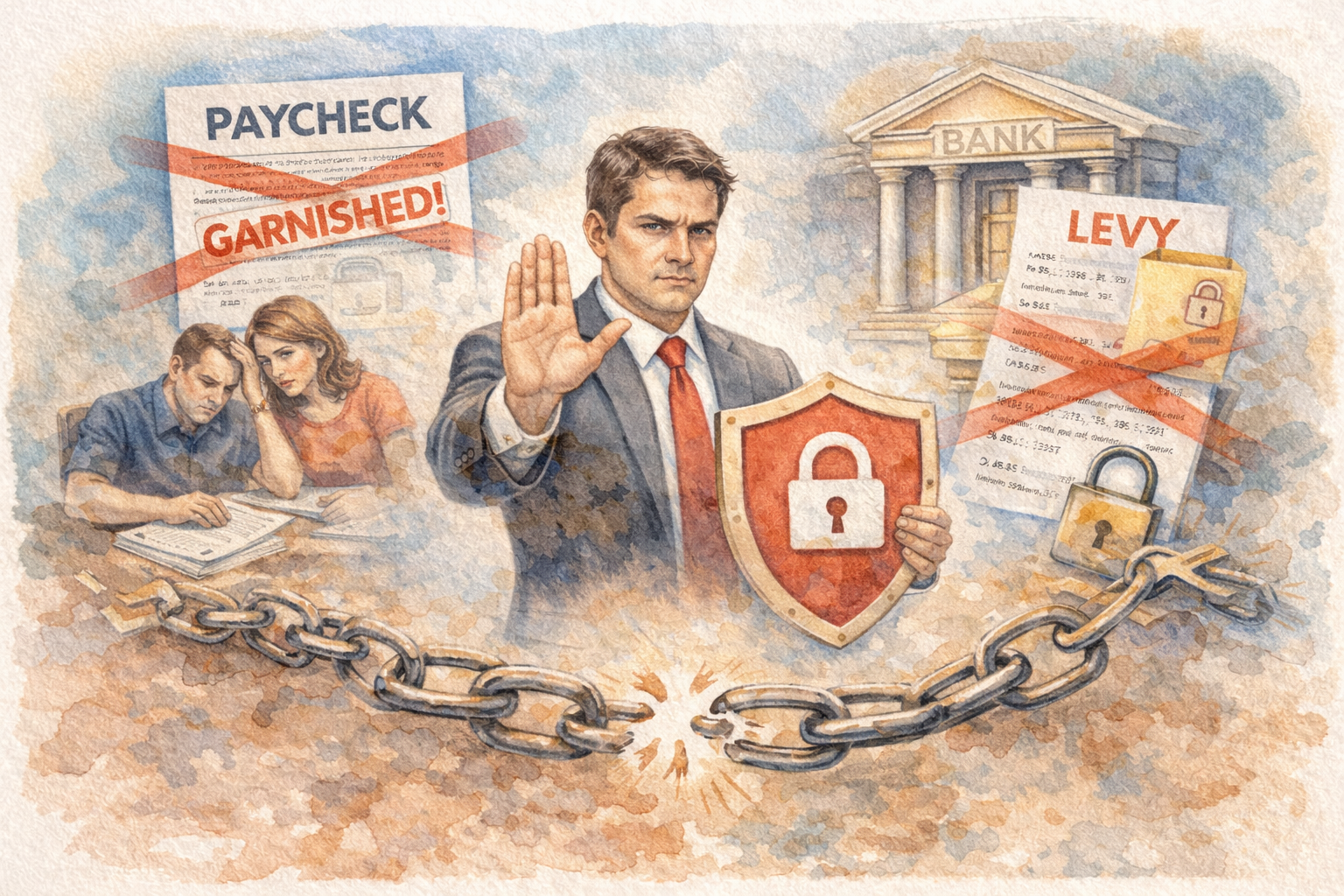 Stopping wage garnishments and bank levies